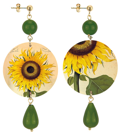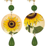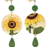 Gli orecchini sono realizzati con capsule piatte stampate su banda stagnata, montati in ottone galvanizzato oro e pietre naturali. Le capsule piatte usate altro non sono che i dischetti metallici che si trovano nella parte alta della gabbietta che trattiene i tappi delle bottiglie di champagne prima di essere imbottiti.