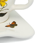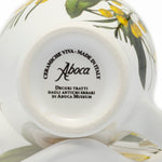 Elegant breakfast cup enriched by a matched saucer for a special moment, made of ceramic and decorated with botanical images taken from the precious herbals guarded at the Bibliotheca Antiqua of Aboca Museum