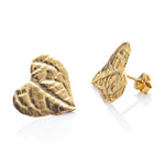 Heart-shaped earrings in sterling silver, plated in 18-karat gold, from the CUORI DELLA NATURA collection for the Aboca Museum.