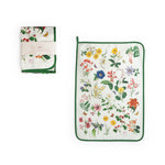 Un paño de cocina natural y elegante de algodón 100% realizado por Maison Sucrèe con imágenes extraídas de antiguos herbarios de la Antigua Biblioteca del Museo de Aboca.