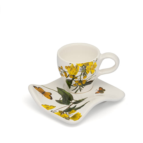 Tazzina con piattino decoro Enotera e Mimosa